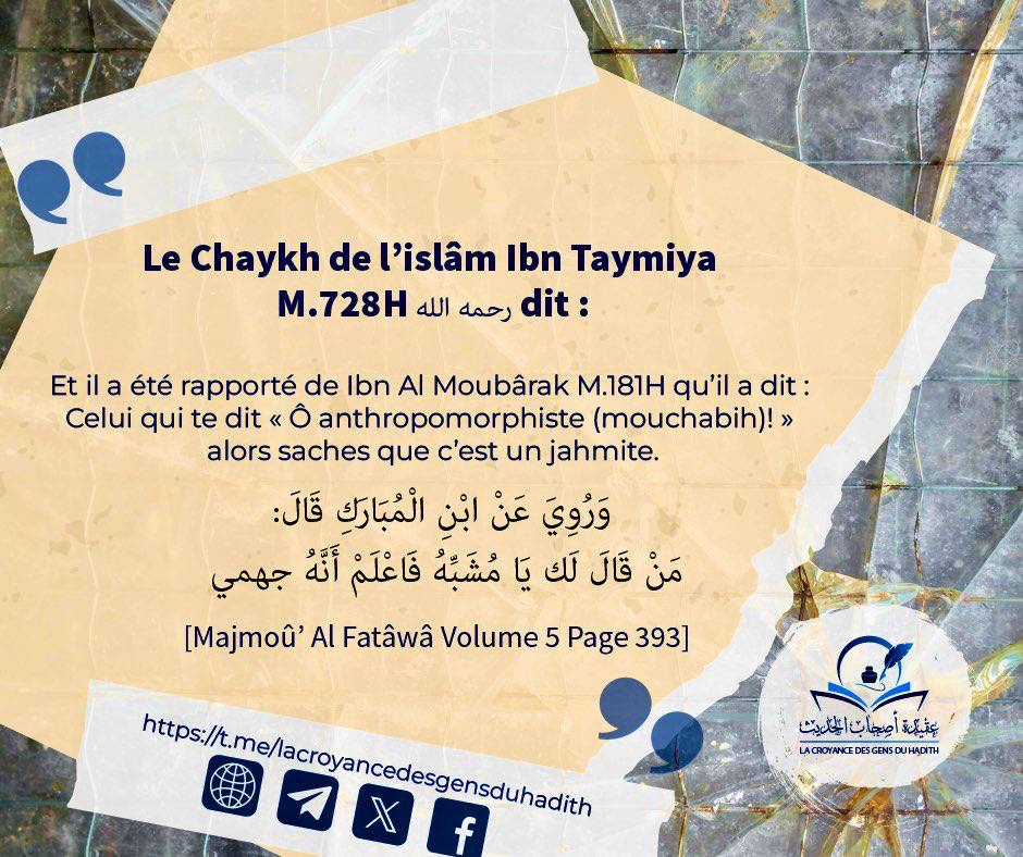 Notre article porte sur la réfutation des accusations mensongères à l’encontre des savants de la Salafiya disant qu’ils sont anthropomorphistes c’est-à-dire qu’ils font ressembler Allah à sa création, mais particulièrement sur le Cheikh Al ‘Outhaymîn. Cette allégation des sectaires n’est basée que sur une seule et unique chose qui est « L’affirmation des Attributs (إثبات الصفات) » qu’ils surnomment eux « faire ressembler Allah aux créatures » comme l’était la croyance des jahmites comme vous pouvez voir sur l’image en-dessous ⤵️